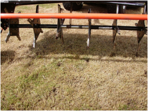 1 – CORTE VERTICAL: A operação de corte vertical se dá com o uso de uma máquina que dispõe de facas colocadas de forma perpendicular a um eixo tendo a função de abrir a malha de grama; ocasionado assim o rejuvenescimento da grama, promovendo novos brotos e eliminando o excesso de grama conhecido como “colchão” ou “thatch”, que não é nada mais que uma quantidade de tecidos vegetais em decomposição que ficam entre a grama e o solo.