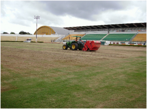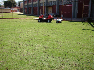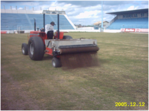 3 – TOP DRESSING: Trata-se de uma operação onde é aplicada uma mistura de areia lavada com substrato para gramados e fertilizantes , visando regularizar a superfície, assim como adicionar nutrientes ao solo. Este trabalho é feito de forma mecanizada, com equipamento Top-Dresser.